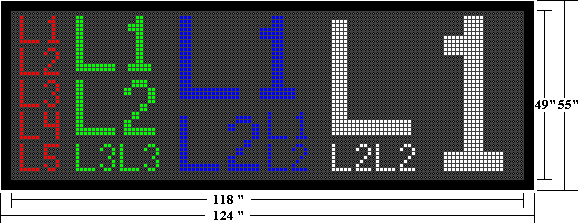 8 x 4 per modules of 5 LED’s per pixel Modules are designed to be “snapped” in and out for quick service.