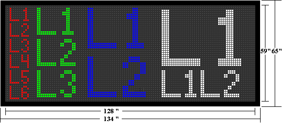 8 x 4 per modules of 5 LED’s per pixel Modules are designed to be “snapped” in and out for quick service.