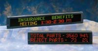 The alphanumeric character sizes range from 2" to 18" high. As a rule, 1" of display height is equal to 40 to 50 feet of viewing distance. So, a 4" high character can be seen up to 200 feet away!  Designed to withstand the industrial environment, the extruded aluminum enclosures are also sleek and attractive. Electronic Displays features both scrolling (moving message) and static (fixed message) marquees.